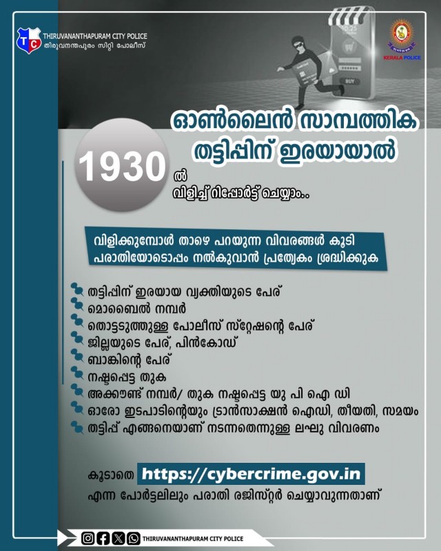 #ThiruvananthapuramCityPolice #onlinefinancialfraud #dial1930