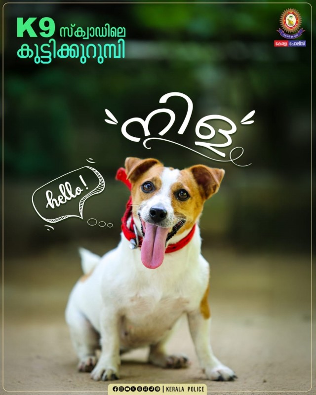 ഇത്തിരിപോന്നവളാണെങ്കിലും ആള് ചില്ലറക്കാരിയല്ല കേട്ടോ. ഇംഗ്ലണ്ട് വംശജരായ ജാക്ക് റസ്സൽ ടെറിയർ വിഭാഗത്തിൽപ്പെട്ട നിള കേരള പോലീസ് K9 സ്ക്വാഡിന്റെ ഭാഗമായിട്ട് രണ്ടു വർഷമാകുന്നു. ലഹരി വസ്തുക്കൾ,10 അടി താഴ്ചയിൽ വരെയുള്ള സ്ഫോടകവസ്തുക്കൾ എന്നിവ മണത്ത് കണ്ടെത്തുന്നതിന് പ്രവീണ്യമുള്ള നിള ഇടുങ്ങിയ സ്ഥലങ്ങളിൽ പോലും ധൈര്യപൂർവ്വം കടന്നു ചെല്ലും. ജാക്ക് റസ്സൽ ടെറിയർ വിഭാഗത്തിൽ പെട്ട 4 നായ്ക്കളാണ് കേരള പോലീസ് K9 സ്ക്വാഡിന്റെ ഭാഗമായുള്ളത്.