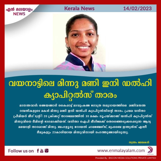 വയനാട്ടിലെ മിന്നു മണി ഇനി ഡല്ഹി ക്യാപിറ്റല്സ് താരം