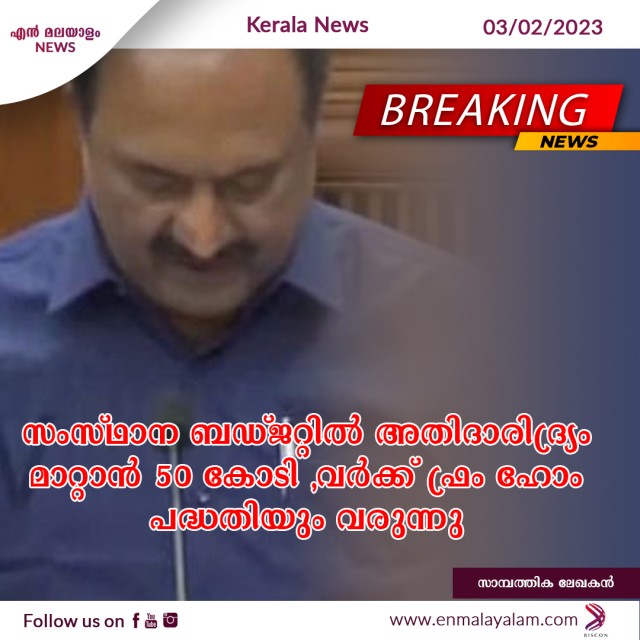 സംസ്ഥാന ബഡ്ജറ്റിൽ അതിദാരിദ്ര്യം മാറ്റാൻ 50 കോടി ,വർക്ക് ഫ്രം ഹോം പദ്ധതിയും വരുന്നു