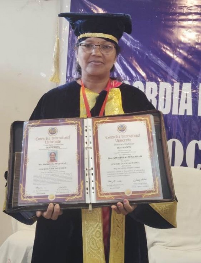 അവകാശങ്ങളുടെ ശബ്ദമായ, അമ്മിണി. കെ. വയനാടിന് ഓണററി ഡോക്ടറേറ്റ് പദവി.