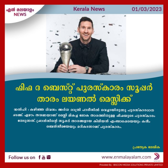 ഫിഫ ദ ബെസ്റ്റ് പുരസ്കാരം സൂപ്പര് താരം ലയണല് മെസ്സിക്ക്