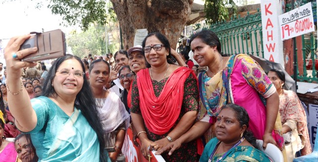 തിരുവനന്തപുരം (28/2/25) : എരിപൊരി വെയിലിലും അപ്രതീക്ഷിതമായി എത്തിയ മഴയിലും തളരാതെ ആശാവർക്കർമാരുടെ രാപകൽ സമരം സെക്രട്ടറിയേറ്റ് പടിക്കൽ തുടരുന്നു. വിവിധ സ്ഥലങ്ങളിൽ തദ്ദേശസ്വയംഭരണ സ്ഥാപന അധ്യക്ഷന്മാരെയും സർക്കാർ സംവിധാനങ്ങളെയും ഉപയോഗിച്ച് ഭീഷണിപ്പെടുത്താനും സമരത്തിൽ നിന്ന് പിന്തിരിപ്പിക്കാൻ ശ്രമങ്ങൾ നടക്കുമ്പോഴും വിവിധ സ്ഥലങ്ങളിൽ നിന്ന് കൂടുതൽ ആശാവർക്കർമാർ സമരവേദിയിലേക്ക് എത്തിച്ചേരുകയാണ്. മുടങ്ങിക്കിടന്ന ഓണറേറിയവും ഇൻസെന്റീവും വളരെ വേഗം നേടിത്തന്ന സമര പോരാളികളെ കാണാൻ ഇടുക്കി ജില്ലയിലെ കാന്തല്ലൂരിൽ നിന്ന് ആശാവർക്കർ ചെല്ലമ്മ എത്തിയത് 19-ാം ദിവസത്തെ ഹൃദ്യമായ അനുഭവമായി.