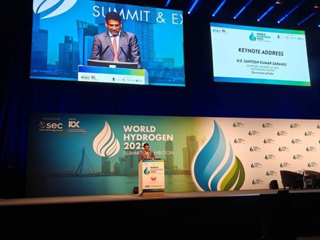 പുനരുപയോഗ ഊർജ്ജത്തിലും ഹരിത ഹൈഡ്രജനിലും ഇന്ത്യയുടെ തന്ത്രപരമായ കാഴ്ചപ്പാടും ശേഷിയും ഉയർത്തിക്കാട്ടിക്കൊണ്ട്, കേന്ദ്ര നവ, പുനരുപയോഗ ഊർജ്ജ മന്ത്രാലയം സെക്രട്ടറി സന്തോഷ് കുമാർ സാരംഗി റോട്ടർഡാമിൽ നടന്ന ലോക ഹൈഡ്രജൻ ഉച്ചകോടി 2025 -നെ അഭിസംബോധന ചെയ്തു.