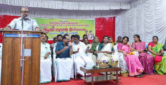 തിരുവനന്തപുരം: നമ്മുടെ ഭാവി നമ്മുടെ കൃഷി അടിസ്ഥാനമാക്കിയാണെന്നും പച്ചക്കറി ഉത്പാദനത്തിൽ സ്വയം പര്യാപ്തതയിലെത്തുന്നതിലൂടെയാണ് നമ്മൾ സ്മാർട്ട് ആകുന്നതെന്നും കൃഷിവകുപ്പ് മന്ത്രി പി.പ്രസാദ്. ചിറയിൻകീഴ് എം.എൽ.എ. വി ശശിയുടെ പ്രാദേശിക വികസന ഫണ്ടിൽ നിന്നും 50 ലക്ഷം രൂപ ചെലവഴിച്ച് നിർമ്മിച്ച കിഴുവിലം കൃഷിഭവൻ മന്ദിരം ഉദ്ഘാടനം നിർവഹിച്ചു സംസാരിക്കുകയായിരുന്നു മന്ത്രി. 2050 അവസാനത്തോടെ ലോകജനസംഖ്യ 1000 കോടി കടക്കും എന്നാണ് പഠനങ്ങൾ സൂചിപ്പിക്കുന്നത്. പാർപ്പിടത്തിന്റെ കാര്യത്തിൽ പ്രതിസന്ധികൾ ഉണ്ടാകില്ലെങ്കിലും ഭക്ഷണലഭ്യത ലോകം അഭിമുഖീകരിക്കാൻ പോകുന്ന ഏറ്റവും വലിയ പ്രതിസന്ധിയാകുമെന്ന് മന്ത്രി കൂട്ടിച്ചേർത്തു. നമ്മുടെ ആരോഗ്യവും നമ്മുടെ വിശപ്പുമൊക്കെ മറ്റുള്ളവരുടെ കച്ചവട ഉപാധിയായി മാറാതിരിക്കാൻ നമ്മൾ അതീവ ജാഗ്രത പുലർത്തണം. ആരോഗ്യകരമായ ഒരു യുവ തലമുറയെ വാർത്തെടുക്കേണ്ടത് അനിവാര്യമാണ്. കേവലം കൃഷിഭവന്റെ അടിസ്ഥാന സൗകര്യം മെച്ചപ്പെടുത്തിയതിലൂടെയോ, ഐ.റ്റി. സംവിധാനങ്ങൾ മെച്ചപ്പെടുത്തിയതിലൂടെയോ കൃഷി സ്മാർട്ടാകുന്നില്ല. പഴം-പച്ചക്കറികളുടെയും, ഇലവർഗ്ഗങ്ങളുടെയും, കിഴങ്ങുവർഗ്ഗങ്ങളുടെയും കാര്യത്തിൽ നമുക്ക് സ്വയംപര്യാപ്തമാകാൻ കഴിയണം അങ്ങനെ മാത്രമേ നമുക്ക് സ്മാർട്ട് ആകാൻ കഴിയു. കൃഷിയോഗ്യമായ ഓരോ തുണ്ട് ഭൂമിയിലും കൃഷി ചെയ്തെങ്കിൽ മാത്രമേ നമുക്ക് ഈ ലക്ഷ്യം കൈവരിക്കാൻ സാധിക്കു മന്ത്രി പറഞ്ഞു. ഓരോ പ്രദേശത്തെയും ജനങ്ങൾ അനുഭവിക്കുന്ന പോഷകാഹാരകുറവ് എന്താണെന്ന് കണ്ടെത്തി അത് പരിഹരിക്കാൻ ഉതകുന്ന കാർഷിക രീതികൾ അനുവർത്തിക്കുന്ന പദ്ധതികൾ നമുക്ക് രൂപീകരിക്കാൻ കഴിയണം, തദ്ദേശ സ്വയംഭരണ സ്ഥാപന മേധാവികളോട് മന്ത്രി ആഹ്വനം ചെയ്തു. ഈ വരുന്ന ഓണം വിഷരഹിതമാക്കുന്നതിനു കർഷകർ ഒത്തൊരുമിച്ച് പ്രവർത്തിക്കണമെന്നും മന്ത്രി പറഞ്ഞു. കാർഷിക മേഖലയുടെ ഉന്നമനത്തിനായി ചിറയിൻകീഴ് നിയോജക മണ്ഡലം ചെയ്യുന്ന മാതൃകാപരമായ പ്രവർത്തികൾക്കും എം.എൽ.എ.യുടെ പ്രത്യേക താല്പര്യത്തിനും അഭിനന്ദനങ്ങൾ അറിയിച്ച മന്ത്രി ചിറയിൻകീഴ് കാർഷിക ബ്ലോക്കിൽ പുതുതായി കൂൺ ഗ്രാമം പദ്ധതി അനുവദിച്ചതായി പ്രഖ്യാപിച്ചു. ചിറയിൻകീഴ് എം.എൽ.എ. വി ശശി അധ്യക്ഷനായ ചടങ്ങിൽ, കിഴുവിലം പഞ്ചായത്ത് പ്രസിഡന്റ് രജിത ആർ സ്വാഗതം ആശംസിച്ചു. ഓരോ വാർഡുകളിൽ നിന്നും തിരഞ്ഞെടുത്ത കർഷക, കർഷക തൊഴിലാളി പ്രതിനിധികളെ മന്ത്രിയും ബ്ലോക്ക് പഞ്ചായത്ത് പ്രസിഡന്റ് ജയശ്രീ പി. സി എന്നിവർ ചേർന്ന് ആദരിച്ചു. പരിപാടിയോടാനുബന്ധിച്ച് സംഘടിപ്പിച്ച ഞാറ്റുവേല ചന്ത ജില്ലാ പഞ്ചായത്ത് വൈസ് പ്രസിഡന്റ് അഡ്വ. എ. ഷൈലജ ബീഗം ഉദ്ഘാടനം നിർവ്വഹിച്ചു. പ്രിൻസിപ്പൽ കൃഷി ഓഫീസർ മേരി കെ അലക്സ് പദ്ധതി വിശദീകരണം നടത്തി. 