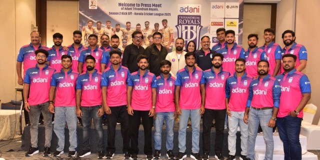 തിരുവനന്തപുരം: കേരള ക്രിക്കറ്റ് ലീഗിന് (കെ.സി.എൽ) മുന്നോടിയായി അദാണി ട്രിവാൻഡ്രം റോയൽസ് ടീമിൻ്റെ ഔദ്യോഗിക ജേഴ്സി പ്രകാശനം ചെയ്തു. തിരുവനന്തപുരത്ത് നടന്ന ചടങ്ങിൽ ടീം ഉടമയും പ്രശസ്ത ചലച്ചിത്ര സംവിധായകനുമായ പ്രിയദർശൻ, അദാണി ഗ്രൂപ്പ് കേരള റീജിയണൽ കോർപ്പറേറ്റ് കമ്മ്യൂണിക്കേഷൻസ് മേധാവി മഹേഷ് ഗുപ്തൻ, ജെയിൻ യൂണിവേഴ്സിറ്റി ഹെഡ് ഓഫ് ഫിനാൻസ് ആൻഡ് ഇൻഡസ്ട്രി ഇനിഷ്യേറ്റീവ്സ് ഡോ. രാധാകൃഷ്ണൻ ഉണ്ണി, മുത്തൂറ്റ് മിനി സി.ഇ.ഒ പി.ഇ. മത്തായി, ഗോ ഈസി സി.ഇ.ഒ പി.ജി. രാംനാഥ്, നിംസ് ഹോസ്പിറ്റലിലെ ഡോ. രാജ് ശങ്കർ എന്നിവർ ചേർന്നാണ് പ്രധാന ജേഴ്സി പുറത്തിറക്കിയത്. ടീമിൻ്റെ ഔദ്യോഗിക ഗാനം പശ്ചാത്തലത്തിൽ മുഴങ്ങിയത് ചടങ്ങിന് ആവേശം പകർന്നു.
