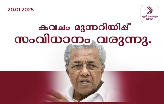 കേരള വാണിംഗ്സ് ക്രൈസിസ് ആന്ഡ് ഹസാര്ഡ് മാനേജ്മെന്റ് സിസ്റ്റം (ദുരന്ത സാധ്യത മുന്നറിയിപ്പ് സംവിധാനം) ജനുവരി 21ന് മുഖ്യമന്ത്രി പിണറായി വിജയൻ ഉദ്ഘാടനം ചെയ്യും. 'കവചം' മുന്നറിയിപ്പ് സൈറണുകളുടെ ഉദ്ഘാടനം ചൊവ്വാഴ്ച വൈകുന്നേരം അഞ്ചിനാണ് നടക്കുക. ദേശീയ ദുരന്ത നിവാരണ അതോറിറ്റി, ലോകബാങ്ക് എന്നിവയുടെ സഹായത്തോടെ, സംസ്ഥാന ദുരന്ത നിവാരണ അതോറിറ്റിയാണ് മുന്നറിയിപ്പ് സംവിധാനം തയ്യാറാക്കിയത്.