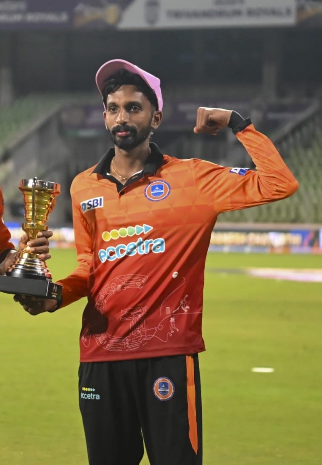 *കെ.സി.എല്ലിലെ വിക്കറ്റ് വേട്ടക്കാരൻ കാലിക്കറ്റിന്റെ സ്വന്തം അഖിൽ സ്കറിയ; ഇത്തവണയും പർപ്പിൾ ക്യാപ് താരത്തിന് സ്വന്തം*