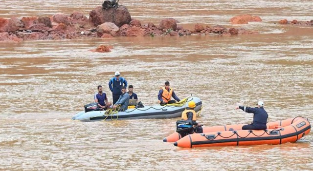 ഗംഗാവലി പുഴയിൽ നാവികസേനയുടെ കൂടുതൽ ബോട്ടുകൾ പരിശോധന നടത്തുന്നു. ലോറിയുടെ യഥാർത്ഥ സ്ഥാനം കണ്ടെത്താൻ ഡ്രോൺ പരിശോധന തുടങ്ങി. ലോറി സാന്നിധ്യം കണ്ടെത്തിയ പോയിന്റ് മൂന്ന് കേന്ദ്രീകരിച്ച് പരിശോധന. സ്പോട്ട് മൂന്നിൽ ലോഹവസ്തുക്കൾ ചിതറിക്കിടക്കുന്നതായി സിഗ്നൽ ലഭിച്ചു.
