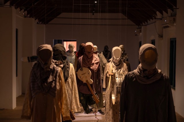 ശരീരമില്ലെന്ന് മാത്രമേയുള്ളൂ വസ്ത്രങ്ങള് തന്നെ ഗിത്താറും മറ്റ് സംഗീതോപകരണങ്ങളും പിടിച്ചിരിക്കുന്നു. ഇന്തോനേഷ്യൻ കലാകാരനും സംഗീതജ്ഞനുമായ ജോംപെറ്റ് കുസ്വിദനന്തോ ഒരുക്കിയ 'ദ ഗോസ്റ്റ് ബാലഡ്' (The Ghost Ballad) എന്ന ഇൻസ്റ്റലേഷൻ ബിനാലെ ആറാം ലക്കത്തിലെ ഏറ്റവും ശ്രദ്ധയാകര്ഷിക്കുന്ന കലാപ്രതിഷ്ഠയെന്ന് നിസ്സംശയം പറയാം.
