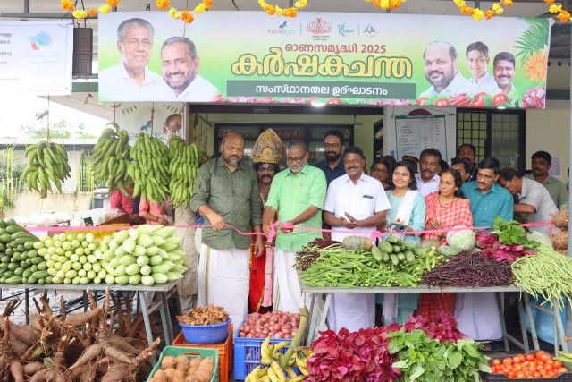കരുമാല്ലൂർ : ഓണക്കാലം വിഷരഹിത ഭക്ഷണകാലമാണെന്നും ആരോഗ്യ കേരളത്തിലേക്കുള്ള പുത്തൻ ചുവടുവെയ്പ്പാണെന്നും കൃഷിമന്ത്രി പി. പ്രസാദ് പറഞ്ഞു. ഓണസമൃദ്ധി 2025 കർഷകചന്തകളുടെ സംസ്ഥാനതല ഉദ്ഘാടനം നിർവഹിച്ച് സംസാരിക്കുകയായിരുന്നു മന്ത്രി. സംസ്ഥാനത്തുടനീളം 2000 കർഷകചന്തകളാണ് കാർഷിക വികസന കർഷക ക്ഷേമ വകുപ്പ്, ഹോർട്ടികോർപ്പ്, വി.എഫ്.പി.സി.കെ. എന്നിവയുടെ സംയുക്ത ആഭിമുഖ്യത്തിൽ ഇന്ന് മുതൽ ആരംഭിക്കുന്നത്. ഓണവിപണി ലക്ഷ്യമാക്കി കർഷകർ ഉൽപാദിപ്പിച്ച നടൻ/ജൈവ ഉൽപ്പന്നങ്ങൾക്ക് മികച്ച വില്പന ഉറപ്പുവരുത്തുന്നതിനും പൊതുജനങ്ങൾക്ക് സുരക്ഷിത ഭക്ഷണം ഉറപ്പാക്കുന്നതും, അതിനോടൊപ്പം ഓണക്കാലത്ത് പച്ചക്കറി വിപണിയിൽ ഉണ്ടാകാറുള്ള അനിയന്ത്രിത വിലക്കയറ്റം തടയുന്നതും ലക്ഷ്യമിട്ടാണ് കൃഷിവകുപ്പ് ഈ സമഗ്ര വിപണി ഇടപെടൽ നടത്തുന്നത് മന്ത്രി പറഞ്ഞു. പ്രകൃതിക്ഷോഭങ്ങൾ ഉൾപ്പെടെ പ്രതികൂല കാലാവസ്ഥയിലും രണ്ട് ലക്ഷം ടൺ പച്ചക്കറി അധികം ഉല്പാദിപ്പിക്കാൻ കേരളത്തിനു കഴിഞ്ഞെന്നും അഖിലേന്ത്യാതലത്തിൽ കാർഷിക മേഖല 2.1 ശതമാനം വളർച്ച കൈവരിച്ചപ്പോൾ കേരളം 4.65 ശതമാനം എന്ന അഭിമാനകരമായ വളർച്ച കൈവരിച്ചെന്നും മന്ത്രി കൂട്ടിച്ചേർത്തു. കർഷകരുടെ വരുമാന വർദ്ധനവിൽ കൃഷി വകുപ്പ് പ്രതിജ്ഞാബദ്ധമാണ്, അന്തസാർന്ന ജീവിതം നയിക്കാൻ കഴിയുന്ന തരത്തിൽ കർഷകരുടെ വരുമാനം വർദ്ധിപ്പിക്കാൻ സാധിച്ചതായും മന്ത്രി പറഞ്ഞു.