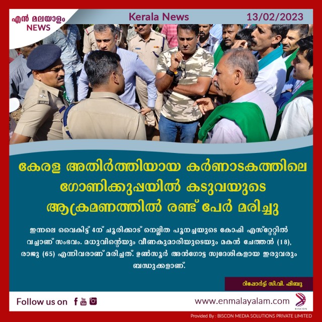 കേരള അതിർത്തിയായ കർണാടകത്തിലെ ഗോണിക്കുപ്പയിൽ കടുവയുടെ ആക്രമണത്തിൽ രണ്ട് പേർ മരിച്ചു
