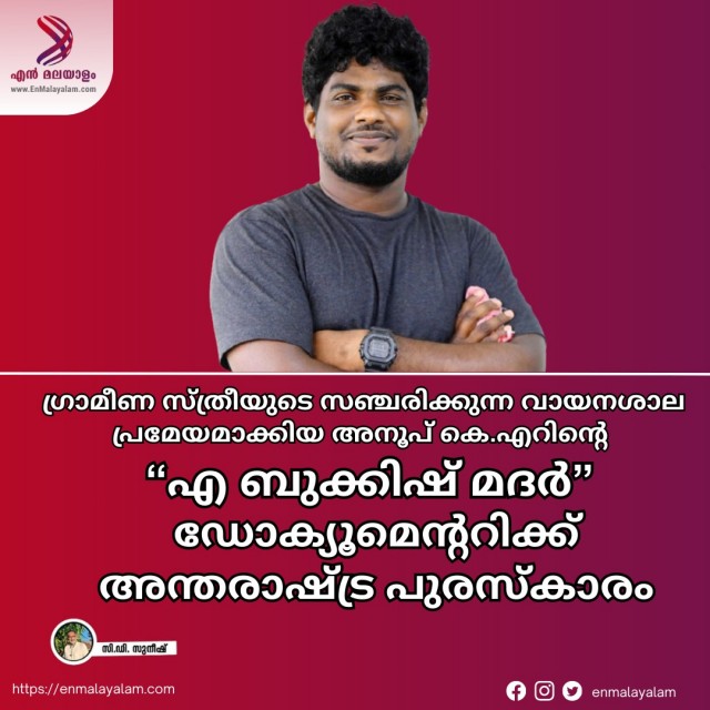 കോർട്ടോ ഡി ലൈബ്രറി ഇന്റർ നാഷണൽ ഡോക്യുമെന്ററി പുരസ്കാരം നേടി കൈരളി ന്യൂസ് സീനിയർ റിപ്പോർട്ടർ അനൂപ് കെആർ സംവിധാനം ചെയ്ത `എ ബുക്കിഷ് മദർ’