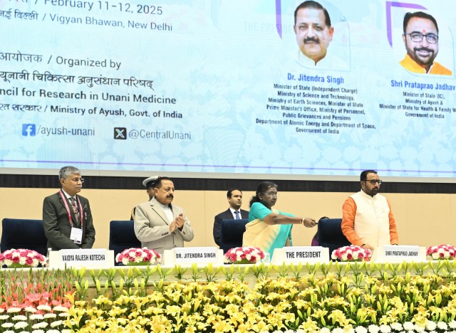 രാഷ്ട്രപതി 'യുനാനി വൈദ്യശാസ്ത്രത്തിലെ നൂതനാശയങ്ങൾ സമഗ്ര ആരോഗ്യ പരിഹാരങ്ങൾക്കായി' എന്ന വിഷയത്തെക്കുറിച്ചുള്ള അന്താരാഷ്ട്ര സമ്മേളനം ഉദ്ഘാടനം ചെയ്തു.