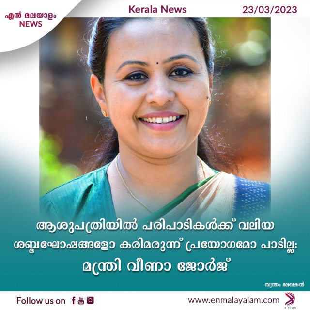 ആശുപത്രിയില് പരിപാടികള്ക്ക് വലിയ ശബ്ദഘോഷങ്ങളോ കരിമരുന്ന് പ്രയോഗമോ പാടില്ല: മന്ത്രി വീണാ ജോര്ജ്