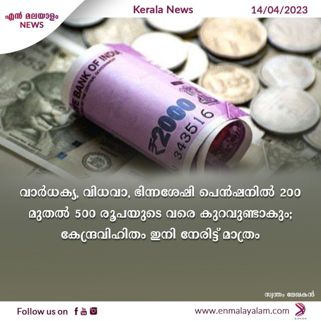 വാര്ധക്യ, വിധവാ, ഭിന്നശേഷി പെന്ഷനില് 200 മുതൽ 500 രൂപയുടെ വരെ കുറവുണ്ടാകും; കേന്ദ്രവിഹിതം ഇനി നേരിട്ട് മാത്രം