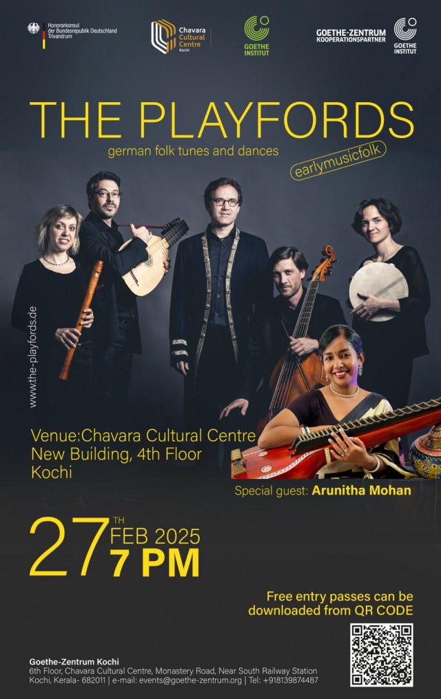 ജര്മ്മന് സാഹിത്യ ഇതിഹാസം ഗൊയ്ഥെയുടെ ജന്മനാടായ വെയ്മറില് നിന്നുള്ള പ്രശസ്ത സംഗീതബാന്ഡായ ദി പ്ലേഫോര്ഡ്സ് വ്യാഴാഴ്ച (ഫെബ്രുവരി 27) കൊച്ചിയിലെത്തും. ചവറ കള്ച്ചറല് സെന്ററില് വൈകിട്ട് ഏഴിന് ദി പ്ലേഫോര്ഡ്സിന്റെ സംഗീതപരിപാടി അരങ്ങേറും.