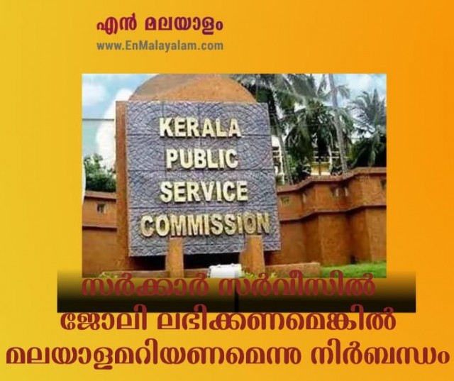 സര്ക്കാര് സര്വീസില് പ്രവേശനം ലഭിക്കണം എങ്കില് മലയാളം അറിഞ്ഞിരിക്കണമെന്ന സംസ്ഥാന സര്ക്കാര്.