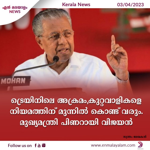 ട്രെയിനിലെ അക്രമം, കുറ്റവാളികളെ നിയമത്തിന് മുന്നിൽ കൊണ്ട് വരും. മുഖ്യമന്ത്രി പിണറായി വിജയൻ