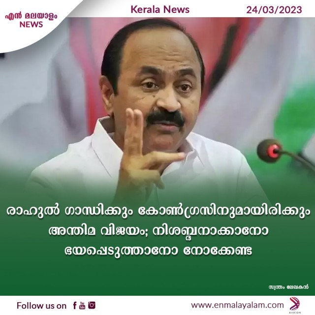രാഹുല് ഗാന്ധിക്കും കോണ്ഗ്രസിനുമായിരിക്കും അന്തിമ വിജയം; നിശബ്ദനാക്കാനോ ഭയപ്പെടുത്താനോ നോക്കേണ്ട