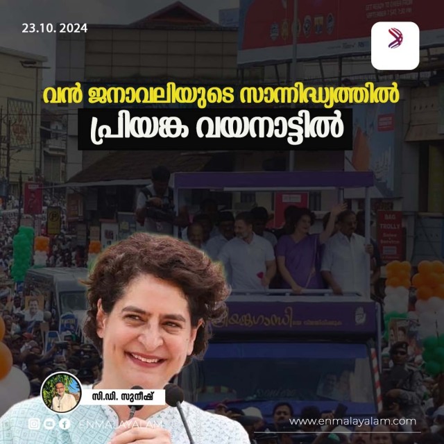 പത്രിക സമര്പ്പിക്കാന് എത്തുന്നതിന് മുമ്പ് തന്നെ വയനാടിന്റെ പ്രിയങ്കരിയായി പ്രിയങ്ക മാറുന്ന കാഴ്ചയാണ് വയനാടിന്ന് കണ്ടത്.