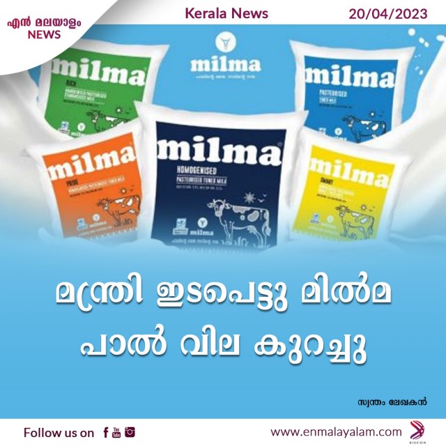 മന്ത്രി ഇടപെട്ടു മിൽമ പാല് വില കുറച്ചു
