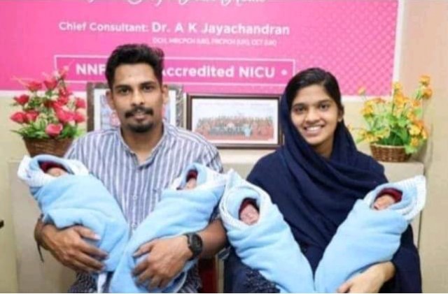 കടിഞ്ഞൂൽ പ്രസവത്തിൽ നാല് കണ്മണികൾ. പെരിന്തൽമണ്ണ Mr & Mis സുധീഷ് അപ്പുക്കുട്ടൻ ദമ്പതികൾക്കാണ് ഈ സൗഭാഗ്യം കൈവന്നത്.