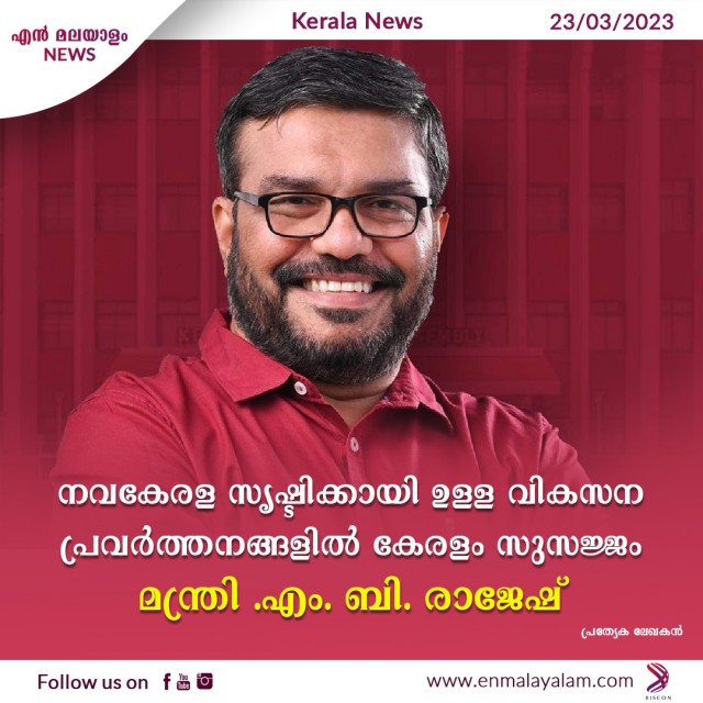 നവകേരള സൃഷ്ടിക്കായി ഉള്ള വികസന പ്രവർത്തനങ്ങളിൽ കേരളം സുസജ്ജം . മന്ത്രി .എം. ബി. രാജേഷ്