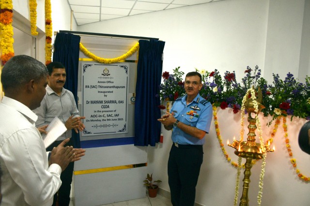 തിരുവനന്തപുരത്തെ ദക്ഷിണ വ്യോമസേന ആസ്ഥാനത്ത് ഐ.എഫ്.എ യുടെ പുതിയ മന്ദിരം ന്യൂ ഡൽഹിയിലെ കൺട്രോളർ ജനറൽ ഓഫ് ഡിഫൻസ് അക്കൗണ്ട്സ് ഡോ. മായങ്ക് ശർമ്മ, IDAS ഇന്ന് (ജൂൺ 09) ദക്ഷിണ വ്യോമസേന മേധാവി എയർ മാർഷൽ മനീഷ് ഖന്നയുടെ സാന്നിധ്യത്തിൽ ഔദ്യോഗികമായി ഉദ്ഘാടനം ചെയ്തു. വ്യോമസേന, നാവികസേന, കരസേന, എം.ഇ.എസ് എന്നിവിടങ്ങളിൽ നിന്നുള്ള മുതിർന്ന ഉദ്യോഗസ്ഥർ ചടങ്ങിൽ പങ്കെടുത്തു. ദക്ഷിണ വ്യോമസേന ഐ.എഫ്.എ . ടി. കബിലൻ,IDAS മുഖ്യാതിഥിയെയും മറ്റ് വിശിഷ്ടാതിഥികളെയും സ്വാഗതം ചെയ്തു, ദക്ഷിണ വ്യോമസേന ഡെപ്യൂട്ടി ഐഎഫ്എ . സി. എ ശ്രീകുമാർ, IDAS നന്ദി പറഞ്ഞു. തിരുവനന്തപുരത്തെ പ്രതിരോധ അക്കൗണ്ട്സ് വകുപ്പ് ഓഫീസുകളിലെ ഉദ്യോഗസ്ഥരും ജീവനക്കാരും ചടങ്ങിൽ പങ്കെടുത്തു.