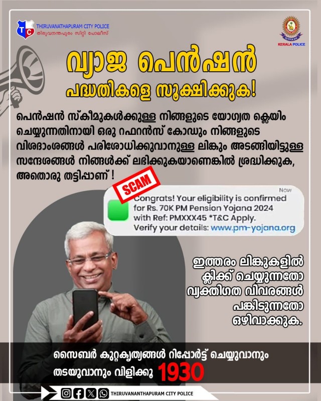 വ്യാജ പെൻഷൻ പദ്ധതികളെ സൂക്ഷിക്കണമെന്ന് കേരള പോലീസ്.