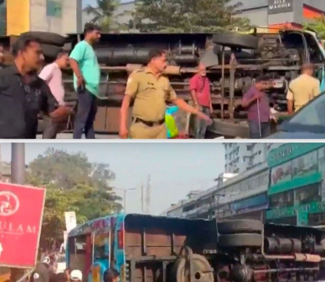 നിയന്ത്രണം വിട്ട് ബസ്സ് മറിഞ്ഞു, കുട്ടികളടക്കം നാല്പതോളം പേർക്ക് പരിക്കേറ്റു.